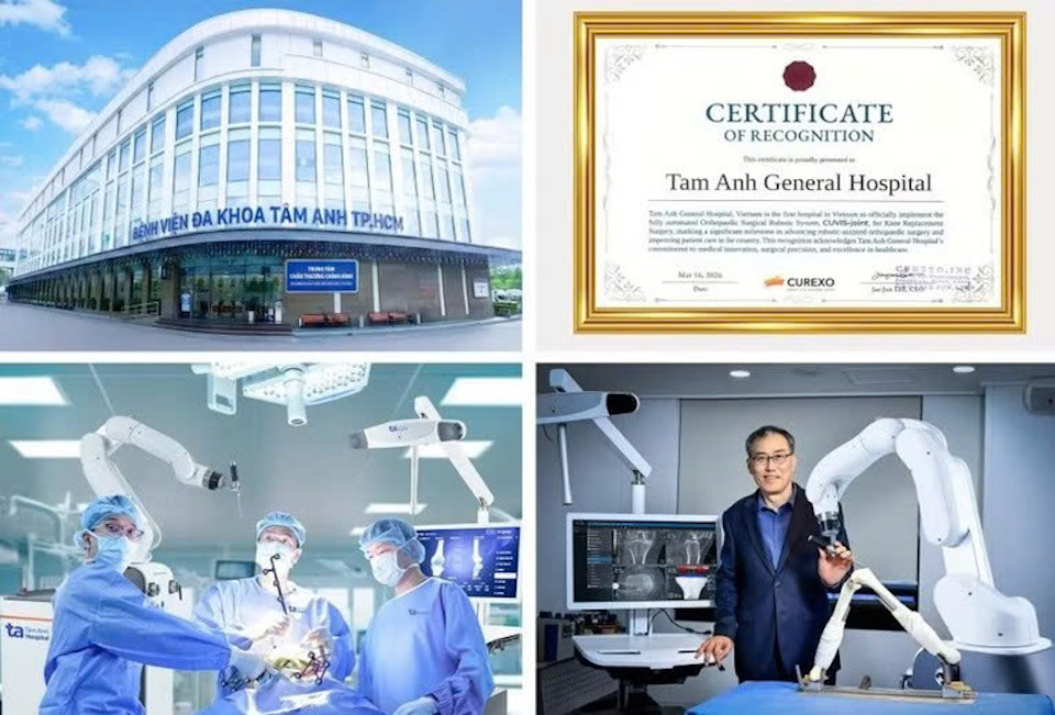 Bệnh viện đa khoa Tâm Anh Thành phố Hồ Chí Minh là cơ sở y tế đầu tiên tại Việt Nam được cấp phép phẫu thuật thay khớp bằng robot trí tuệ nhân tạo (AI) thế hệ mới CUVIS-Joint, chủ động thực hiện nhiều công đoạn và thao tác với độ chuẩn xác vượt trội, gia tăng hiệu quả, an toàn cho người bệnh và hiệu suất làm việc của bác sĩ.